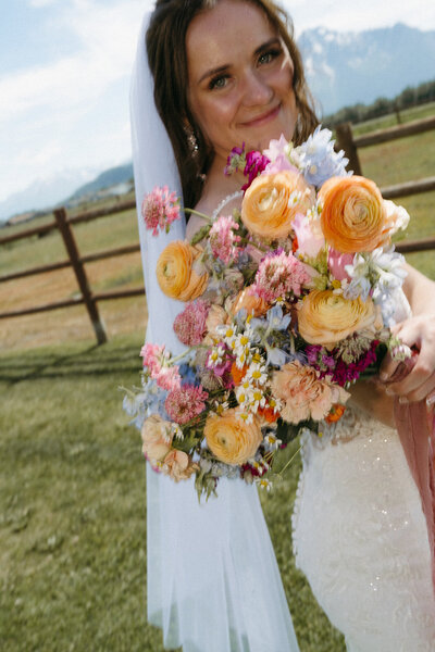 The colors were vibrant and curated while still maintaining the wildflower feel I was after, bringing so much life to our celebration. Not only that, it withstood a helicopter/hiking elopement and for weeks afterward while road tripping around Alaska! (I couldn’t bear to part with it) Thank you so much Kasara for the care and attention you put into the flowers to make our day even more special :)